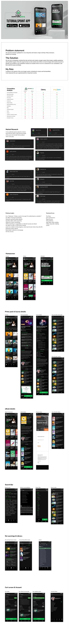 Designed a mobile learning app for Tutorialspoint using a research-driven UX approach. Conducted user research and usability analysis to identify navigation and content-access challenges. Created structured user flows, wireframes, and UI components to simplify learning. The design focused on clarity, scalability, and ease of use.